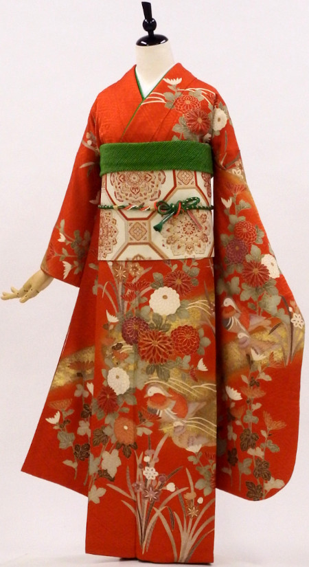 【特別価格セール品】正絹振袖22点セットUSED販売/ 1791-32564-ワ33956 /帯は新品!/★訳あり特価 /さび朱