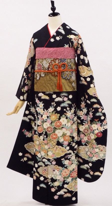 【特別価格セール品】正絹振袖22点セットUSED販売/ 1786-28670-27016 /★訳あり特価 /黒