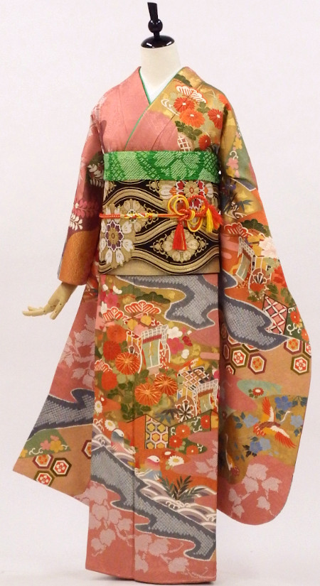 【特別価格セール品】正絹振袖22点セットUSED販売/ 1818-23347-25496 /★訳あり特価 /サーモンピンク