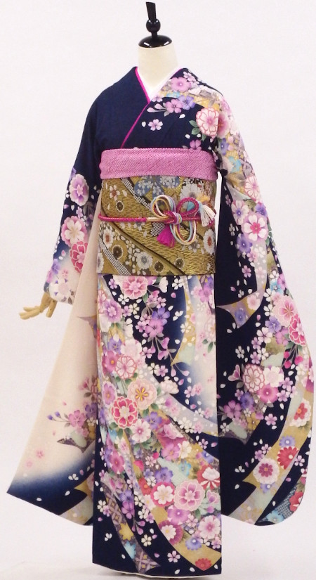 【特別価格セール品】正絹振袖22点セットUSED販売/ 1815-27582-25432 /★訳あり特価 /紺
