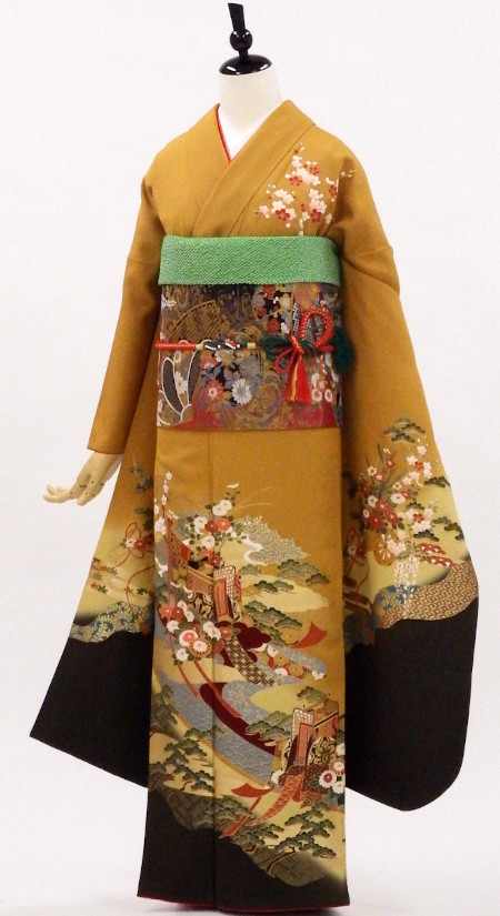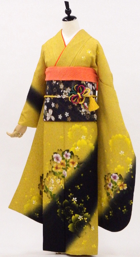 【特別価格セール品】正絹振袖22点セットUSED販売/ 1835-32840-27263 /★訳あり特価 /カラシ