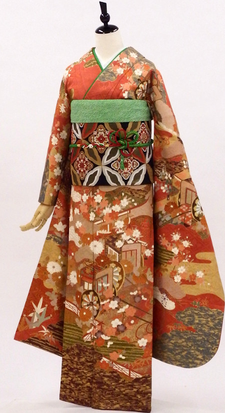 【特別価格セール品】正絹振袖22点セットUSED販売/ 1845-29846-ワ33938 /帯は新品!/★訳あり特価 /さび朱
