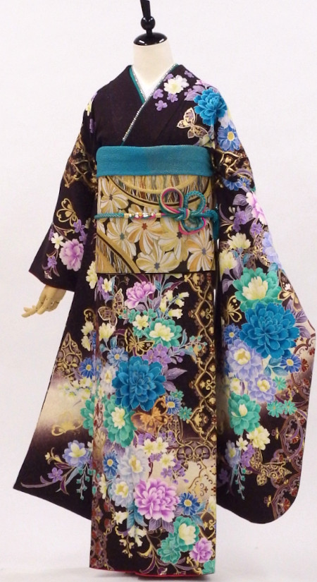 【特別価格セール品】正絹振袖22点セットUSED販売/ 1858-27843-27100 /黒