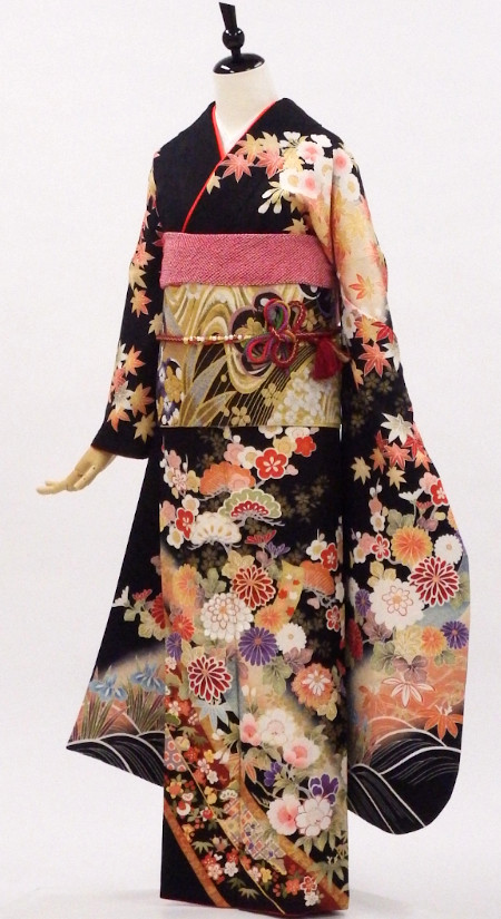 【特別価格セール品】正絹振袖22点セットUSED販売/ 1851-30454-26286 /黒