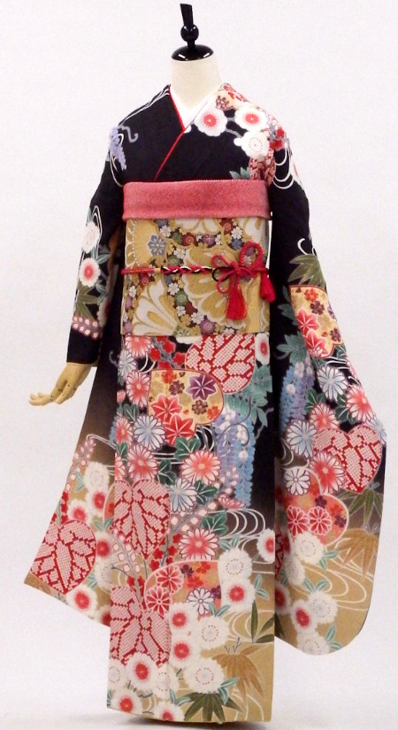 【特別価格セール品】正絹振袖22点セットUSED販売/ 1862-32177-26840 /★訳あり特価 /黒