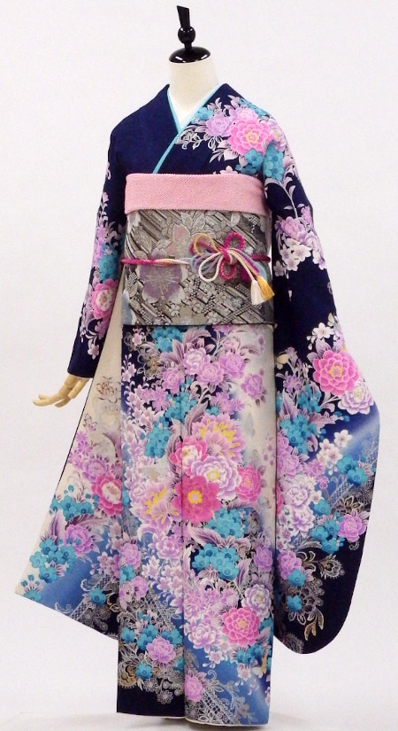 【特別価格セール品】正絹振袖22点セットUSED販売/ 1870-28299-ワ29406 /帯は新品! /紺