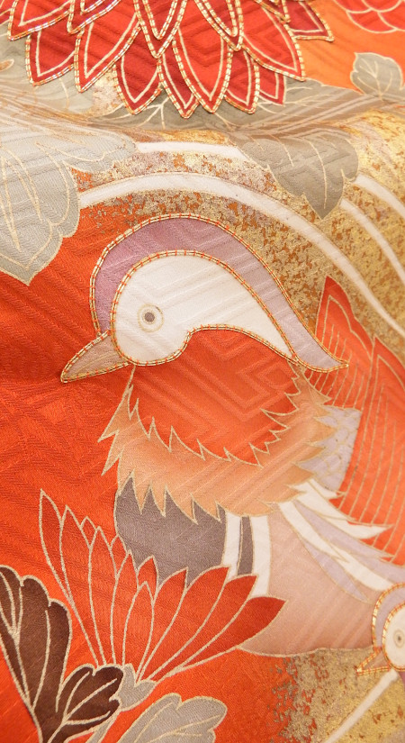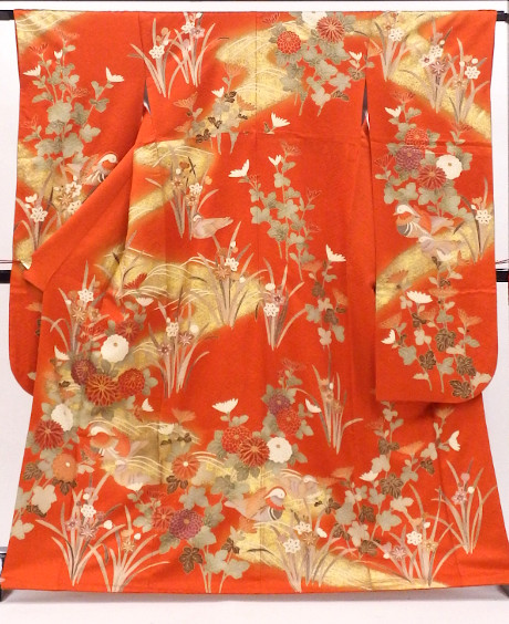 【訳ありの理由】 下画像のように、両肩山の箔に擦れた跡、上前の箔に変色がございます。また、左胸の胴裏にシミがございます。ご了承の上、お買い求めくださいませ。