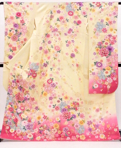 【特別価格セール品】正絹振袖22点セットUSED販売/ 1839-28472-ワ31490 /帯は新品! /クリーム