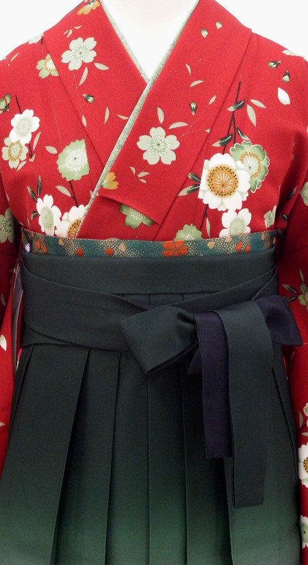 卒業袴/特別販売/赤八重桜小紋の小振袖/グリーン黒二色ボカシの袴/7335/5719