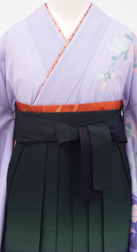 卒業袴/特別販売/藤色流水桜の小振袖/グリーン黒二色ボカシの袴/3780/5716