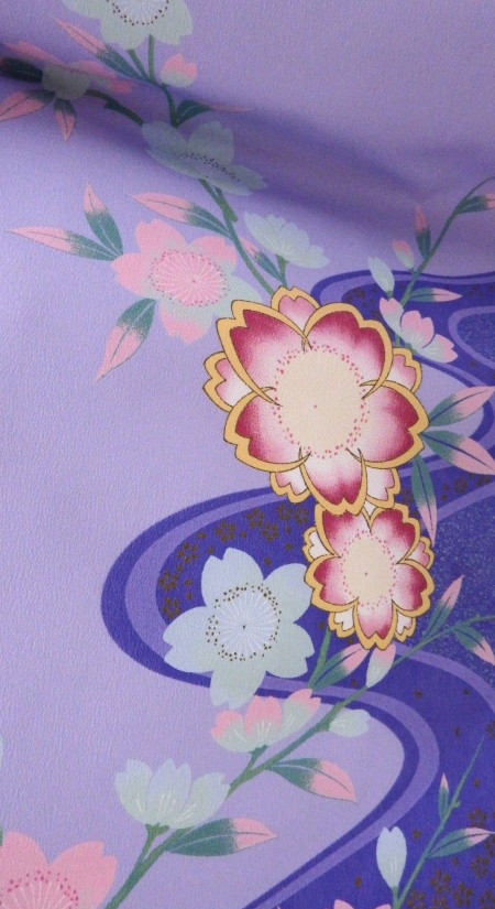 大きな流水と桜が個性的な着物です。ボカシの袴でモダンテイストなコーディネートに。