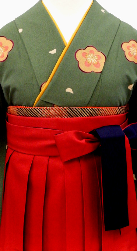 卒業袴/特別販売/モスグリーン梅の小振袖/赤紺二色ボカシの袴/10204/10134
