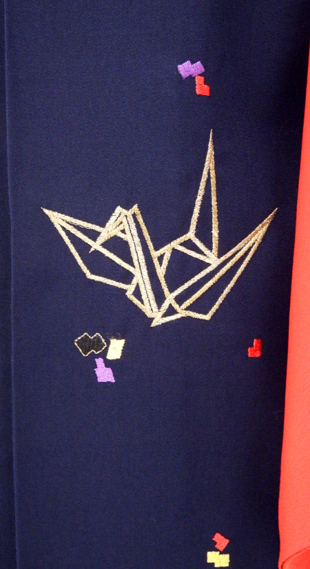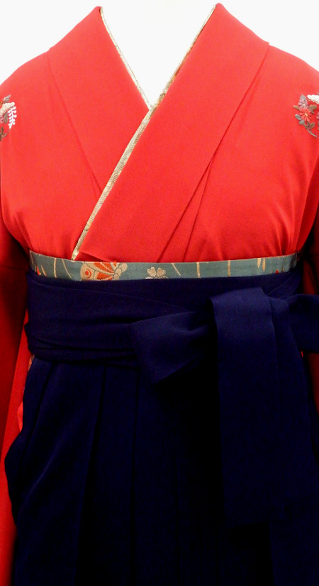 卒業袴/特別販売/ワイン花紋の小振袖/紺折鶴刺しゅうの袴/5575/6883