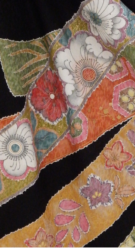 彩り豊かに熨斗を描いた着物です。すっきりとしたデザインが印象的です。