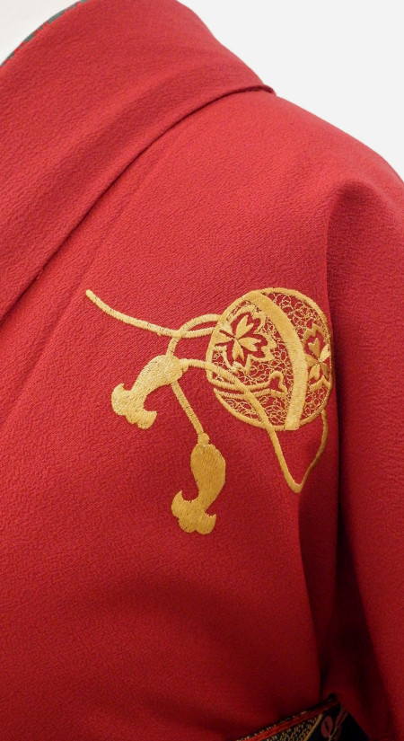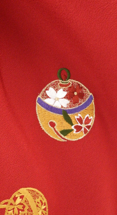 ちりめん地に繊細な刺しゅうが描き出す鈴の柄が上品です。シンプルながら上質さを感じさせるセットです。