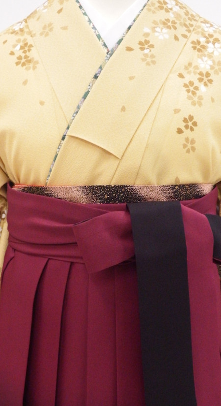 卒業袴/特別販売/クリーム花吹雪の小振袖/ワイン黒二色ボカシの袴/12270/2289