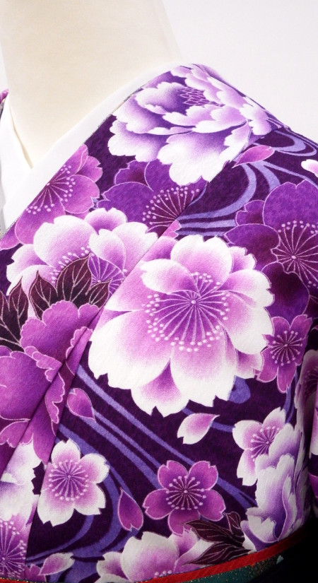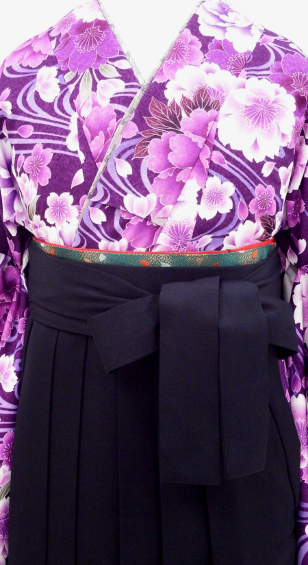 卒業袴/特別販売/紫流れ牡丹の小振袖/黒桜蝶刺しゅうの袴/18173/12101
