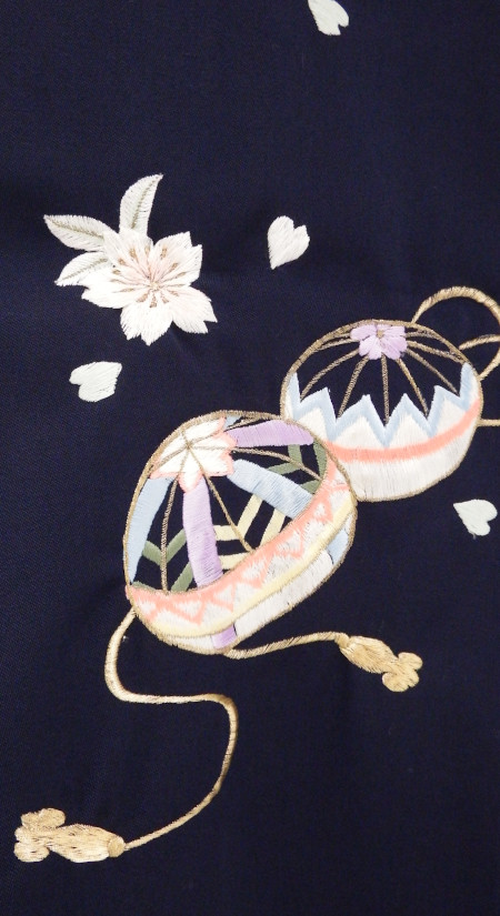 卒業袴/特別販売/オレンジ手まりの小振袖/紺手まり刺しゅうの袴/13687/6043