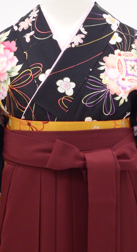 卒業袴/特別販売/黒くす玉の小振袖/エンジ桜蝶刺しゅうの袴/15591/6342