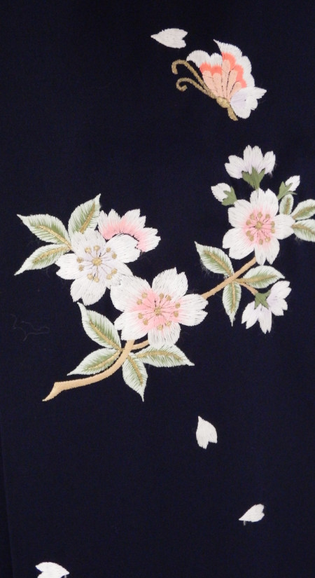 卒業袴/特別販売/白牡丹の小振袖/紺桜蝶刺しゅうの袴/15612/11914