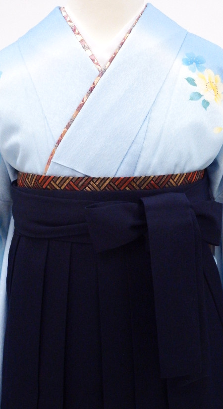 水色の着物に紺色の袴を合わせた爽やかなコーディネート。すっきりとしたデザインがお好きな方におすすめ。