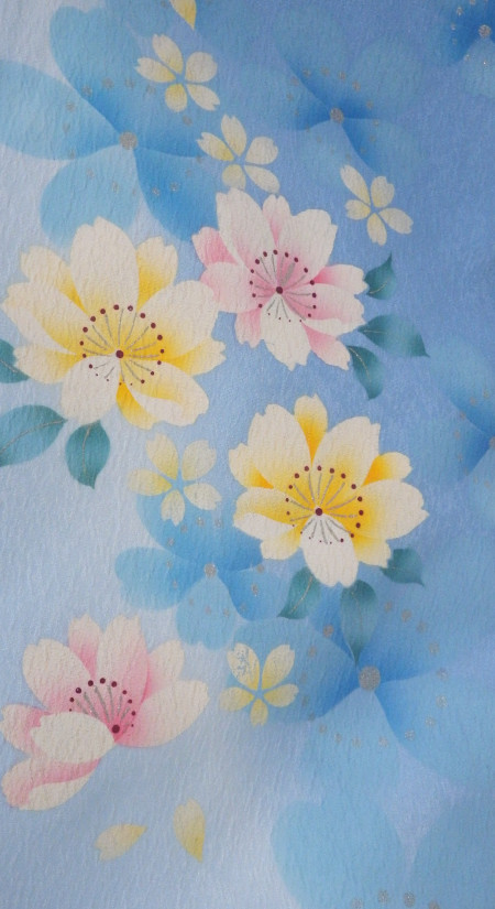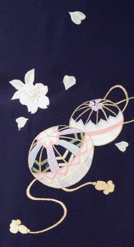 卒業袴/特別販売/ブルーぼかし八重桜の小振袖/紺手まり刺しゅうの袴/14415/11357