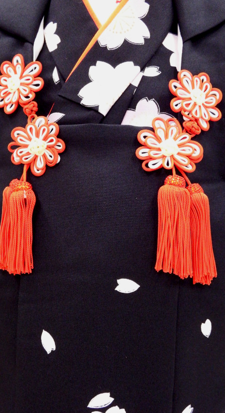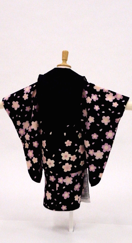 訳あり特価/七五三/3才着物販売11点セット(USED)/黒/おとな可愛い桜柄/36408(S)